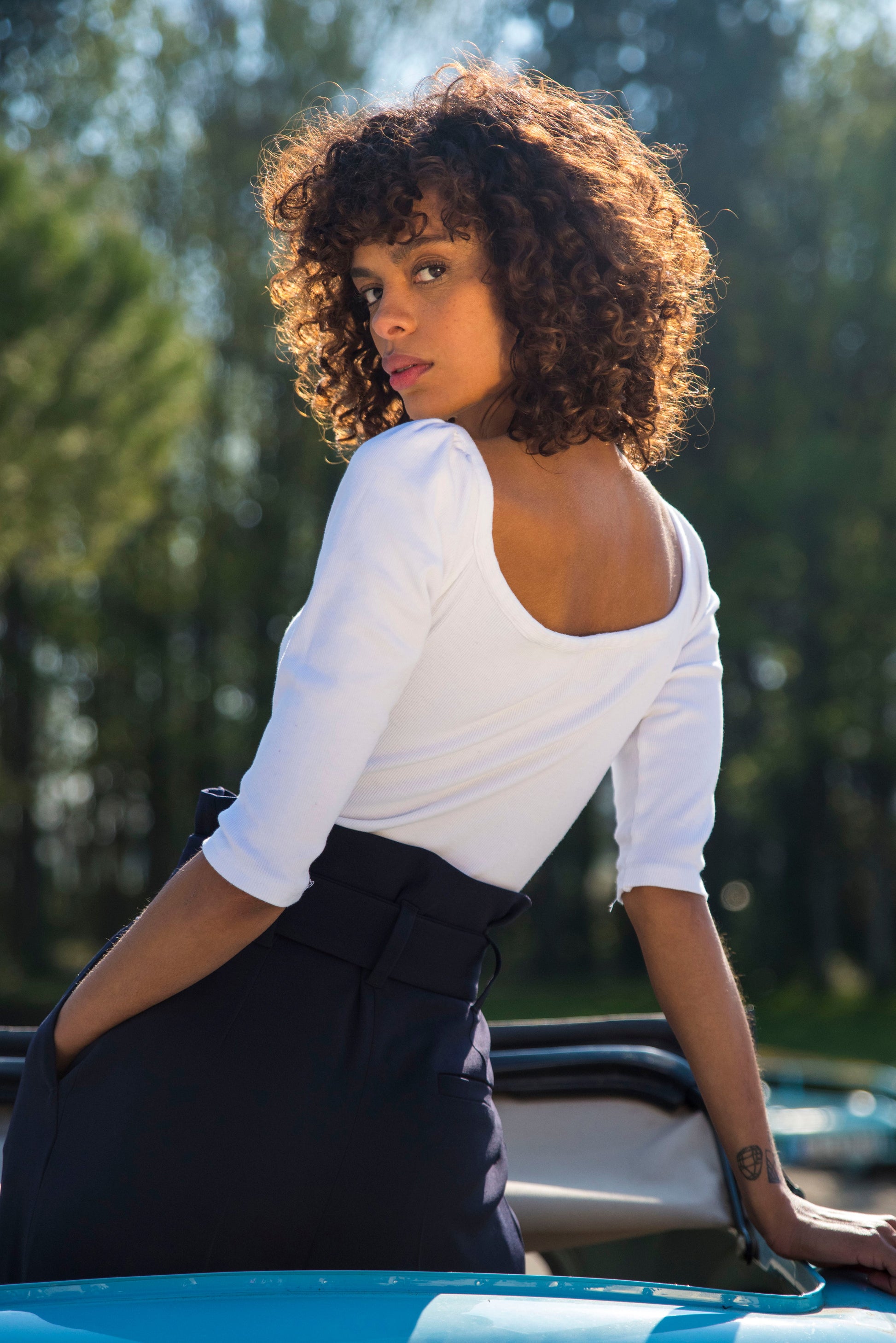 You will love Paola bodysuit and its square-cut neck. It's not only elegant but very sensual. Its pleated shoulders and the 3 small white and gold rounded buttons will make you fall in love.